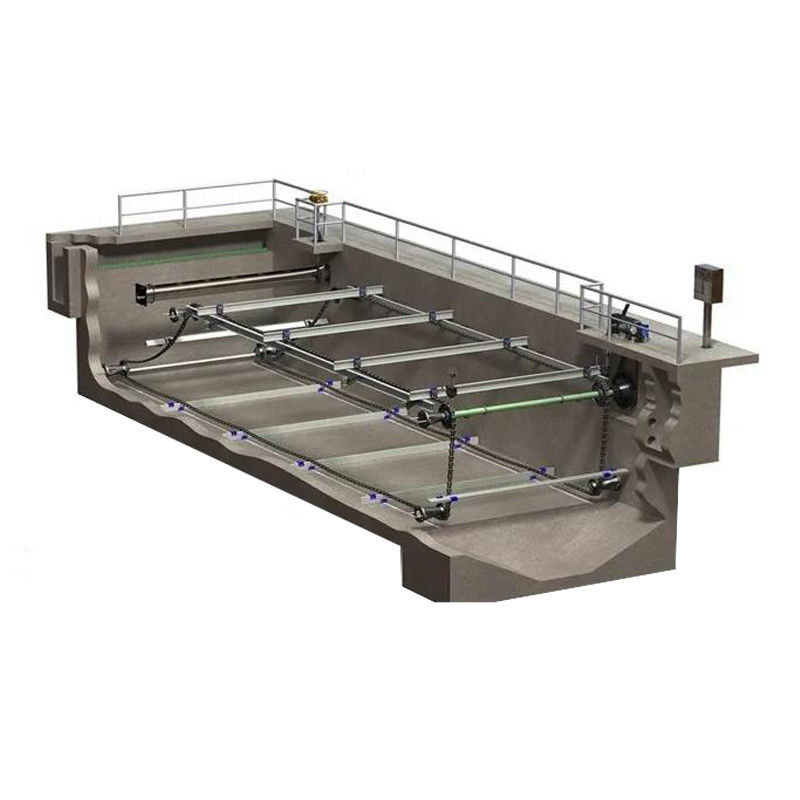 มีดโกนตะกอนชนิดโซ่เป็นอุปกรณ์กำจัดตะกอนชนิดแขวนลอย ซึ่งเหมาะสำหรับการระบายตะกอนจากถังตกตะกอนหลักแบบวงกลม ถังตกตะกอนทุติยภูมิ และถังเก็บความเข้มข้นในโครงการบำบัดน้ำถังตกตะกอนเป็นโครงสร้างคอนกรีตหรือเหล็กด้านล่างของถังมีรูปทรงกรวยเล็กน้อย และตรงกลางของก้นถังเป็นถังกากตะกอนที่เชื่อมต่อกับท่อกากตะกอนสะพานทำงานเป็นโครงสร้างคอนกรีตหรือเหล็กอุปกรณ์นี้ไม่รวมตัวสระและสะพานที่ใช้งานได้ผู้ใช้สามารถแก้ปัญหาได้ด้วยตัวเอง